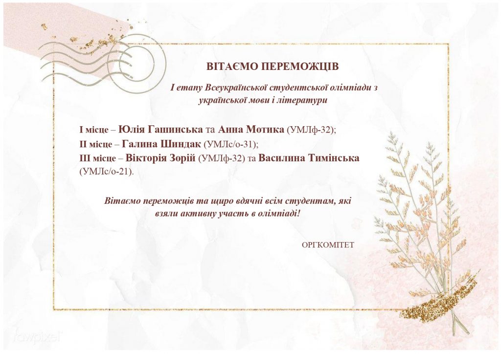 І етап Всеукраїнської студентської олімпіади з української мови і літератури