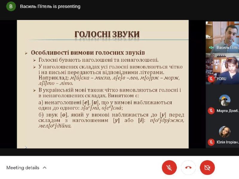 Минулої неділі, 7 березня, доцент кафедри української мови Василь Пітель провів перше онлайн-заняття (Фонетика. Графіка. Орфоепія) для абітурієнтів. До віртуальної авдиторії завітало 87 слухачів.