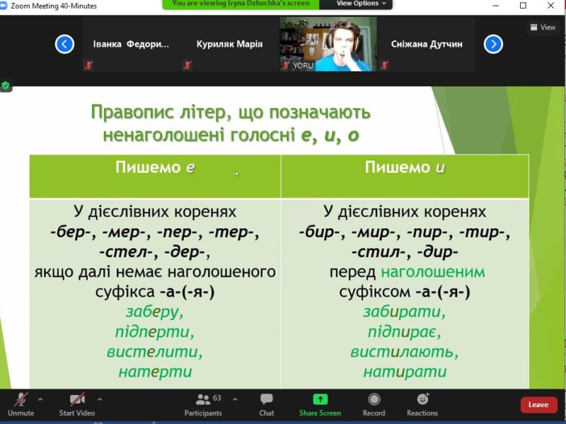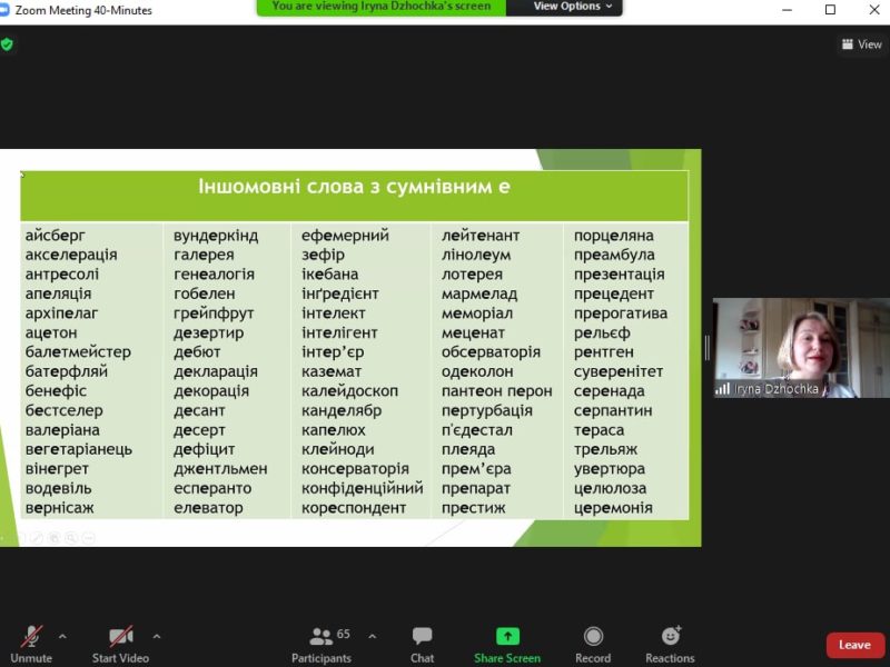На занятті абітурієнти мали змогу пригадати, повторити й узагальнити матеріал із таких тем орфографії: “Правопис літер, що позначають ненаголошені голосні е, и, о”, “Спрощення в групах приголосних”, “Зміни приголосних за творення слів”, “Знак м’якшення”, “Апостроф”, “Подвоєння літер”, “Правопис префіксів”. Дякуємо всім учасникам за активну участь у виконанні вправ та завдань, розв’язанні тестів, аргументоване коментування вибору саме тієї чи іншої відповіді. Дві години минули непомітно, оскільки робота була динамічною й жвавою.  Зрозуміло, що в межах такого часу все сприйняти й запам’ятати складно, тому учні часто просили дати змогу зробити скріншоти, щоб вдома ще раз за потреби повторити орфограми, особливо винятки й окремі слова, написання яких, як свідчить практика, викликає у школярів найбільше труднощів. Тішить, що маємо чимало учасників, які відвідують кожне заняття.
