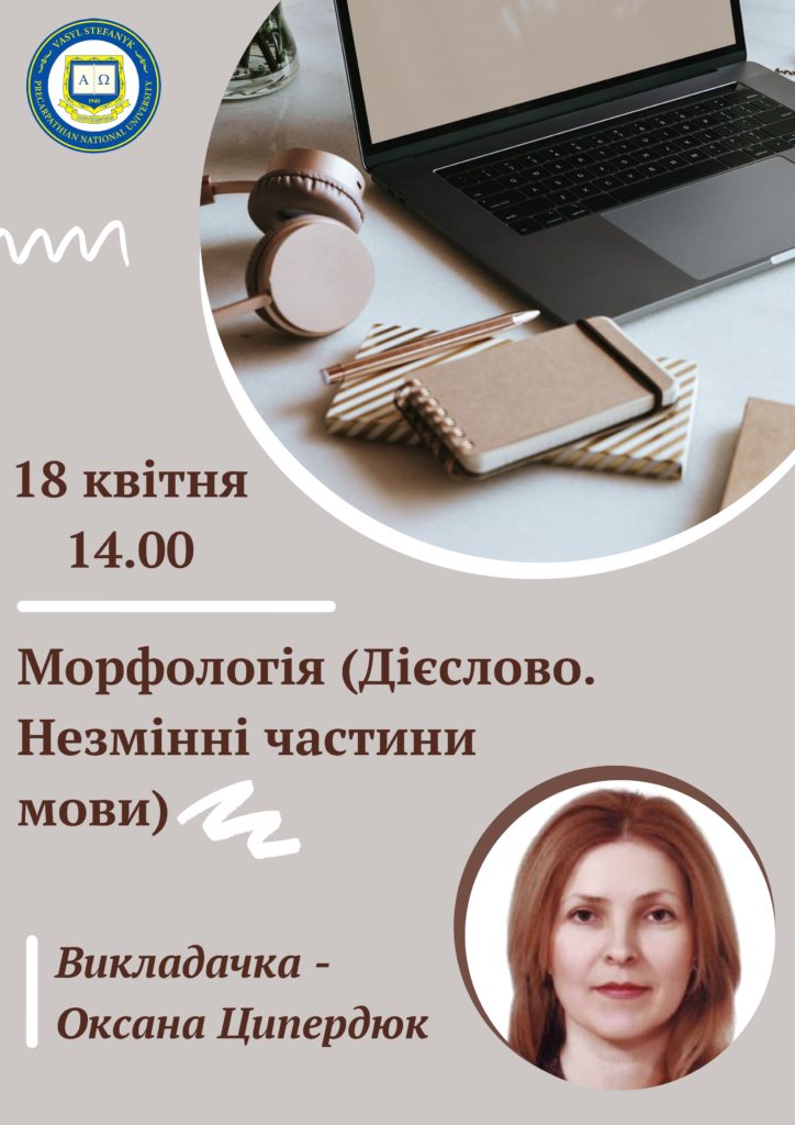 Цієї неділі, 18 квітня, о 14.00 відбудеться друге заняття з морфології. Разом із доценткою кафедри української мови Оксаною Ципердюк охочі зможуть узагальнити й систематизувати знання з тем «Дієслово» і «Незмінні частини мови». Чекаємо на вас за покликанням: https://zoom.us/j/2173589136?pwd=U2RQQ1VQNjRSVXU2VFc3dDV1SXZIZz09