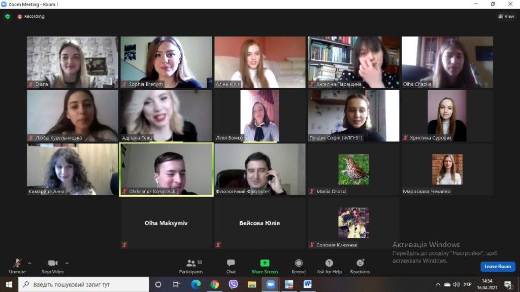 16 квітня 2021 року магістрині Факультету філології взяли участь у ХІХ Всеукраїнській науковій конференції молодих філологів “VIVAT ACADEMIA”: “АРИСТОКРАТКА УКРАЇНСЬКОГО ДУХУ” (до 150-річчя від дня народження Лесі Українки), що проводилася за сприяння філологічного факультету Львівського національного університету імені Івана Франка дистанційно на Читати далі