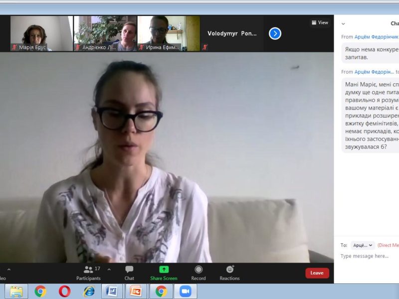 У роботі секції «Питання лексичної, граматичної та словотвірної семантики» взяла участь доцентка кафедри української мови Прикарпатського національного університету імені Василя Стефаника Брус Марія Петрівна. Вона виголосила доповідь на тему «Походження фемінітивів (на основі «Етимологічного словника української мови» за ред. О. С. Мельничука)». Учасниками цієї секції були українські й білоруські філологи Л. Андрієнко, І. Єфименко, Г. Латушка, Л. Ніколаєнко, М. Остапенко, В. Пономаренко, Т. Цимбалюк-Скопненко. В обговоренні доповідей брали участь присутні гості з українських та зарубіжних вузів.