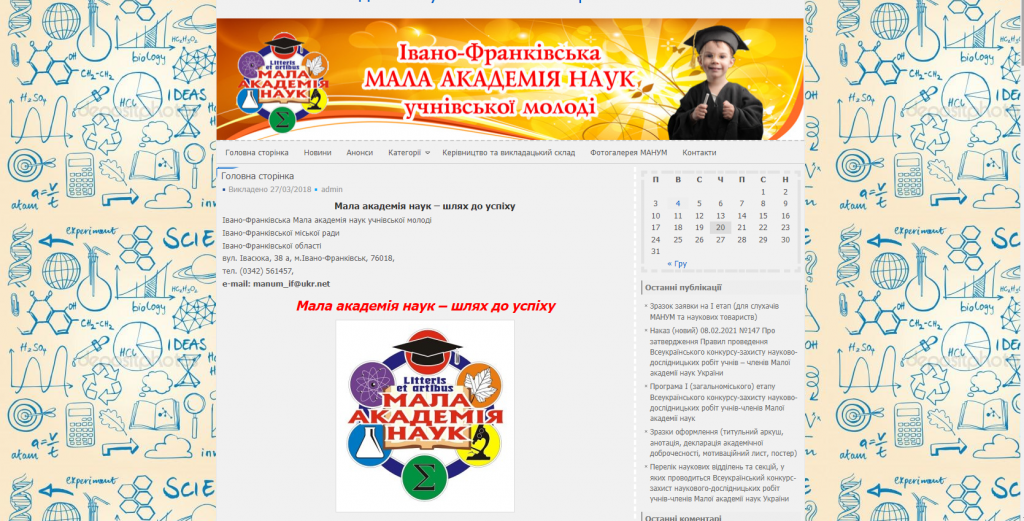 20 січня відбувся І (загальноміський) етап Всеукраїнського конкурсу-захисту науково-дослідницьких робіт членів Івано-Франківської Малої академії наук учнівської молоді. У рецензуванні перших праць юних науковців та в роботі журі секції «Літературознавство. Мистецтвознавство. Мовознавство» взяла участь доцентка кафедри української мови Любов Пена. На Читати далі