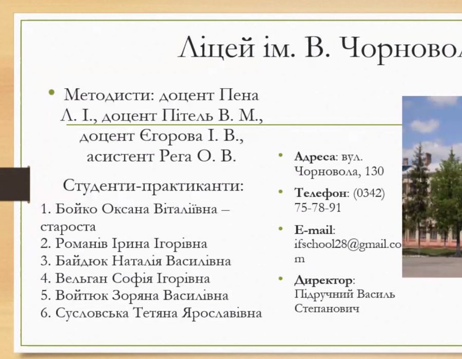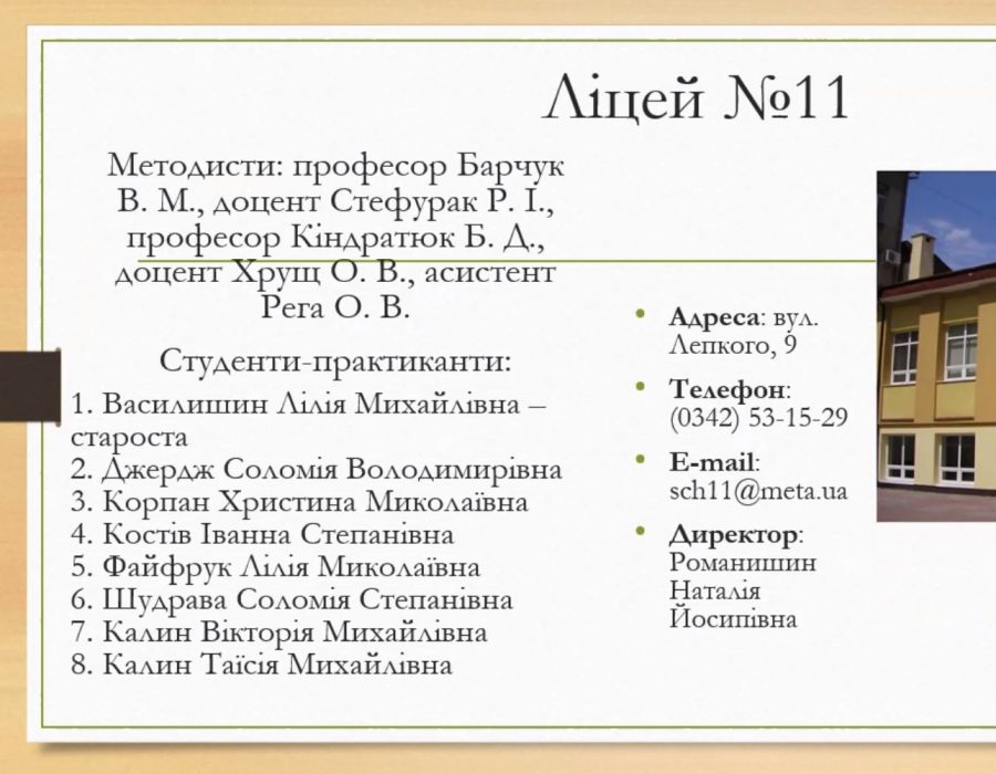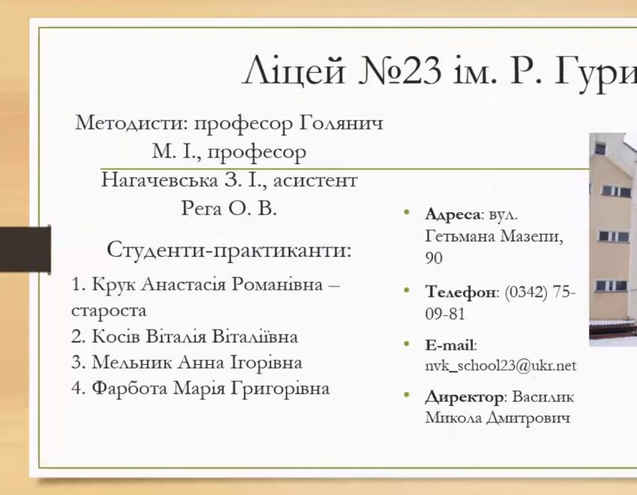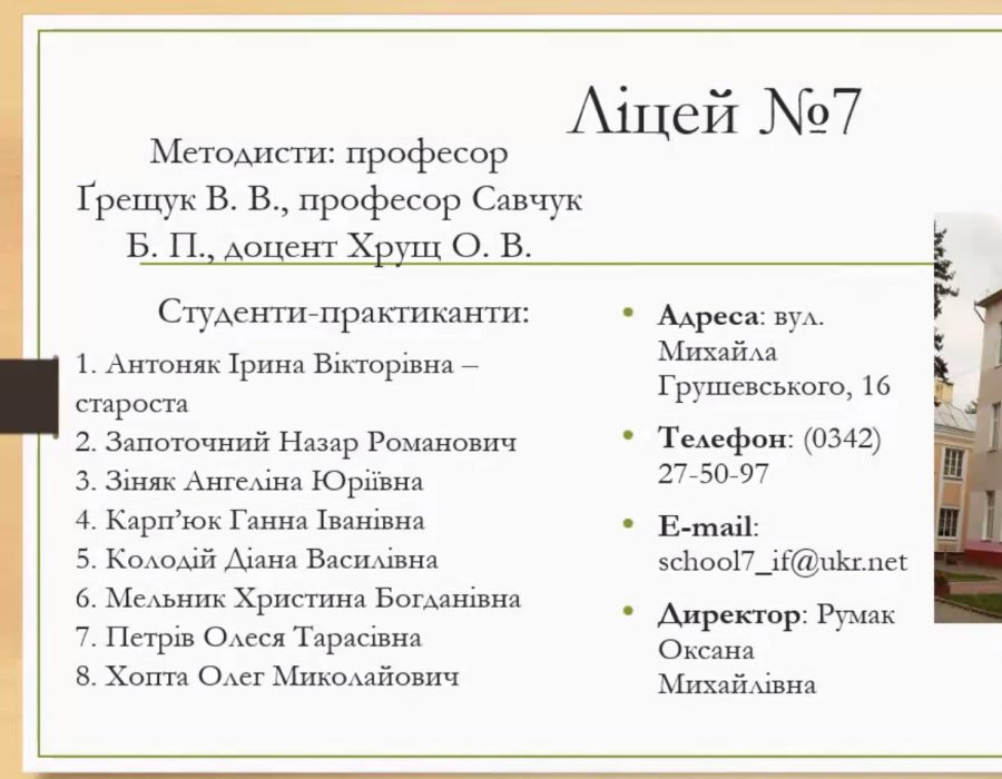 Завідувачка кафедри педагогіки, доцентка Любов Прокопів наголосила на визначальних аспектах проходження практики і звернула увагу на нові підходи у роботі вчителя-словесника. Із найкращими побажаннями та слушними порадами звернулася доцентка кафедри педагогіки Віра Ковальчук, яка охоче поділилася своїм досвідом та відзначила основні напрями роботи в сьогоднішніх умовах. Методистка кафедри психології Олена Хрущ розповіла про не менш важливий сегмент практики, який передбачає створення психолого-педагогічної характеристики учня та ведення іншої документації.
