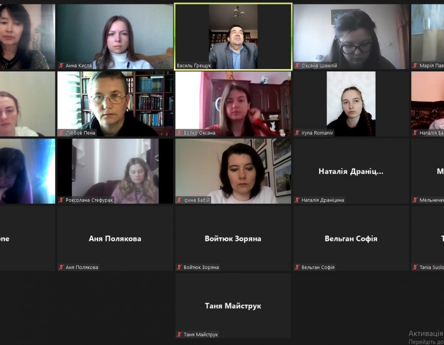 28 березня відбулася настановча нарада з питань організації та проведення виробничої навчально-виховної педагогічної практики зі студентами 3 курсу денної та заочної форми навчання спеціальностей 014 Середня освіта (014.01 Українська мова і література) та 035 Філологія (035.01 Українська мова і література). Керівниця практики, доцентка кафедри загального та германського мовознавства Валентина Ґрещук провела онлайн-зустріч, на якій підкреслила, що студенти готові до проходження такої практики, оскільки впродовж навчання здобули всі компетентності, які потрібні у роботі з учнями.