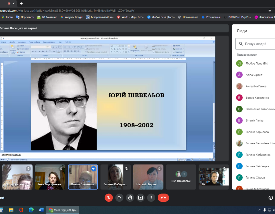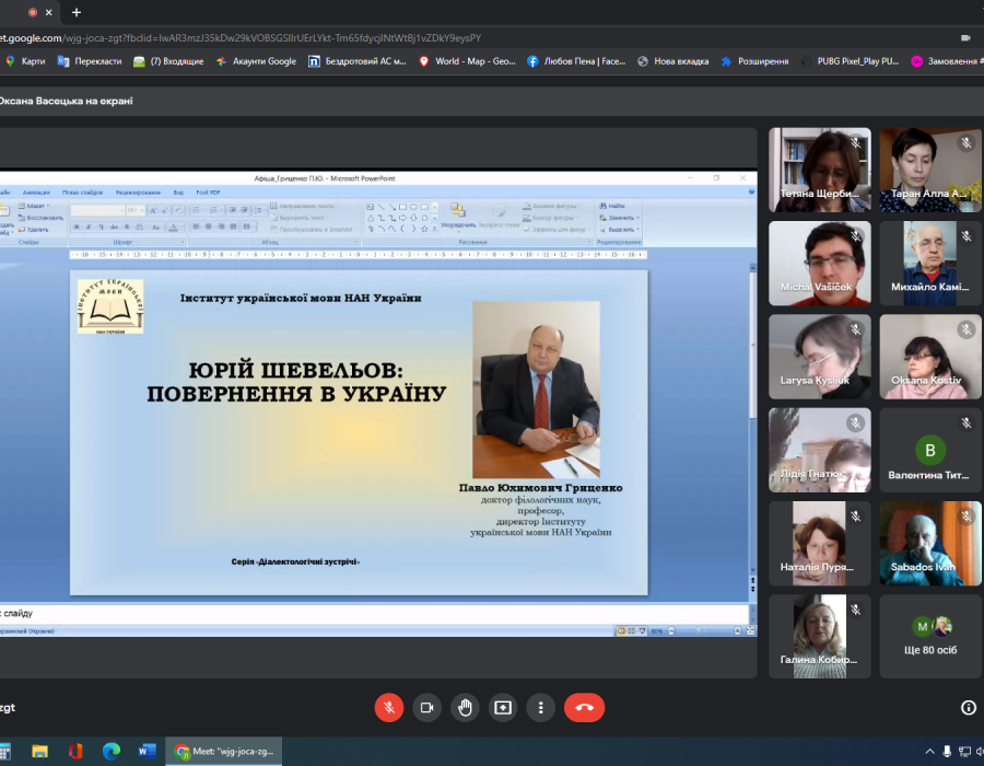 11 квітня відбулася лекція-спогад «Юрій Шевельов: повернення в Україну». Її виголосив доктор філологічних наук, професор, директор Інституту української мови НАН України Павло Гриценко. Павло Юхимович обґрунтував, чому саме сьогодні, у переддень 20-ї річниці з дня відходу Юрія Шевельова від земного життя, говоримо про цю непересічну особистість, поділився своїми споминами про особистий досвід спілкування з ним, схарактеризував його вклад у розвиток славістики, зокрема й україністики. Особливо було наголошено на величезному внеску Юрія Шевельова в розбудову українського історичного мовознавства.