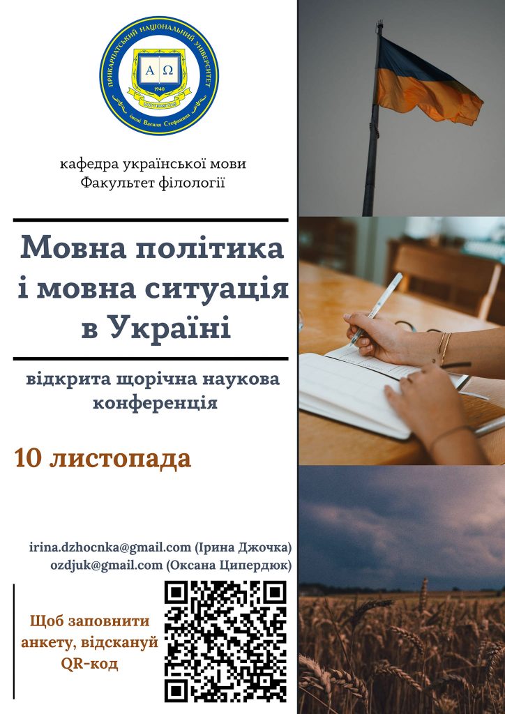 10 листопада 2022 року о 15 годині в рамках Тижня української писемності та мови кафедра української мови Факультету філології Прикарпатського національного університету імені Василя Стефаника проводить відкриту щорічну наукову конференцію «Мовна політика і мовна ситуація в Україні». Тематика конференції Функціонування Читати далі