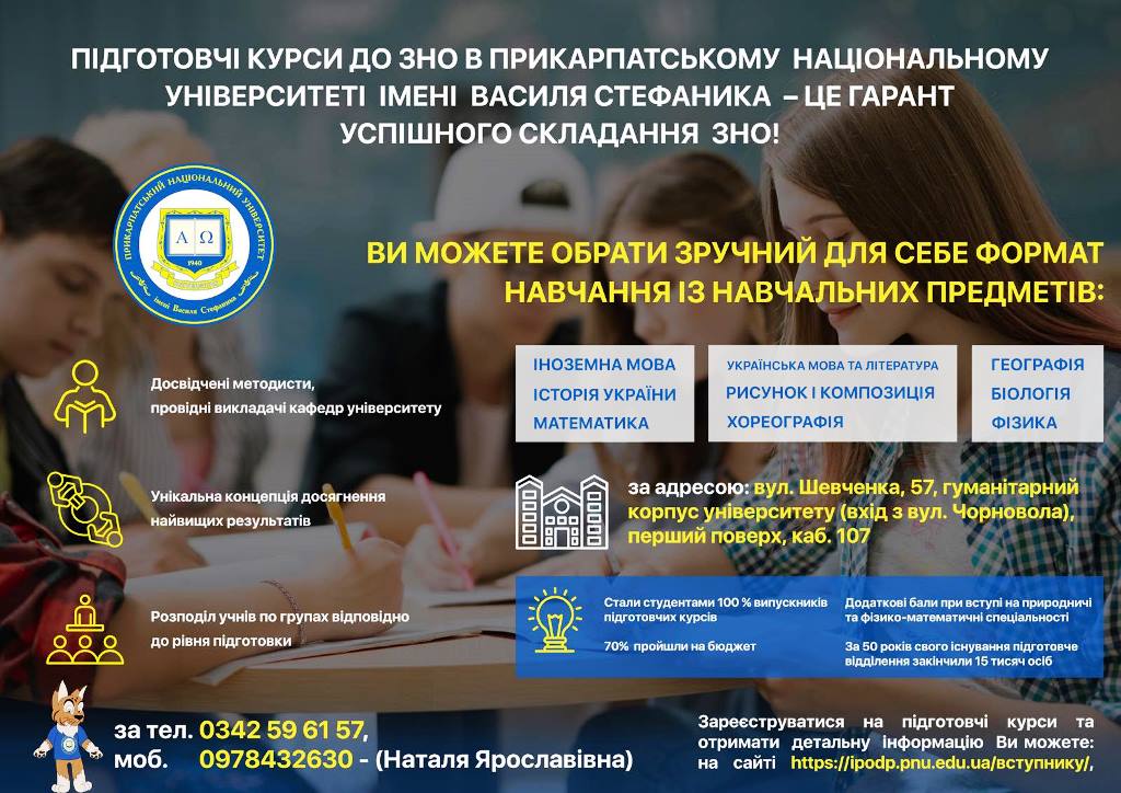 Інститут післядипломної освіти та довузівської підготовки Прикарпатського національного університету імені Василя Стефаника проводить набір слухачів на курси підготовки до ЗНО у 2023 році! Пропонуємо якісно, успішно, а головне – легко і цікаво підготуватися до зовнішнього незалежного оцінювання разом із кращими Читати далі