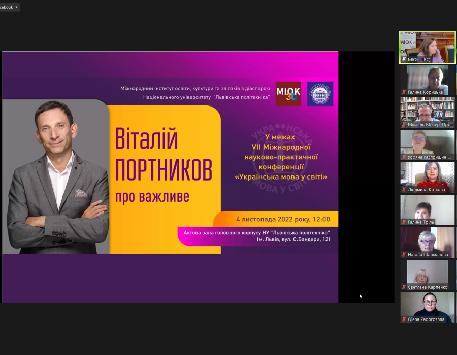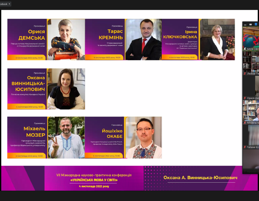 Доцентка кафедри Любов Іванівна Пена взяла участь у VII Міжнародній науково-практичній конференції «Українська мова у світі», яка відбулася 4 листопада у змішаному форматі й була організована Міжнародним інститутом освіти, культури та зв’язків з діаспорою (м. Львів).