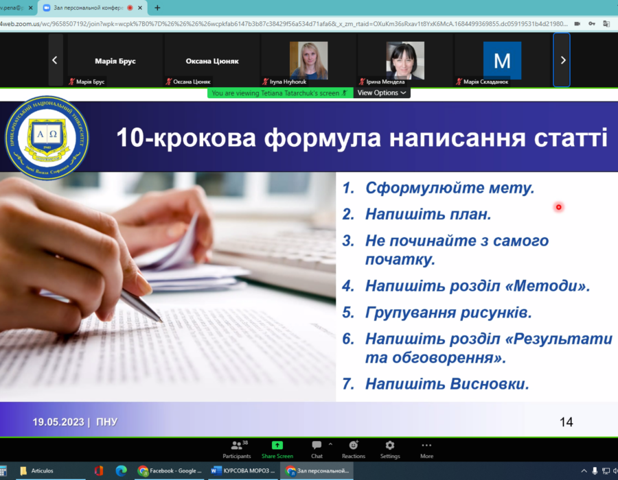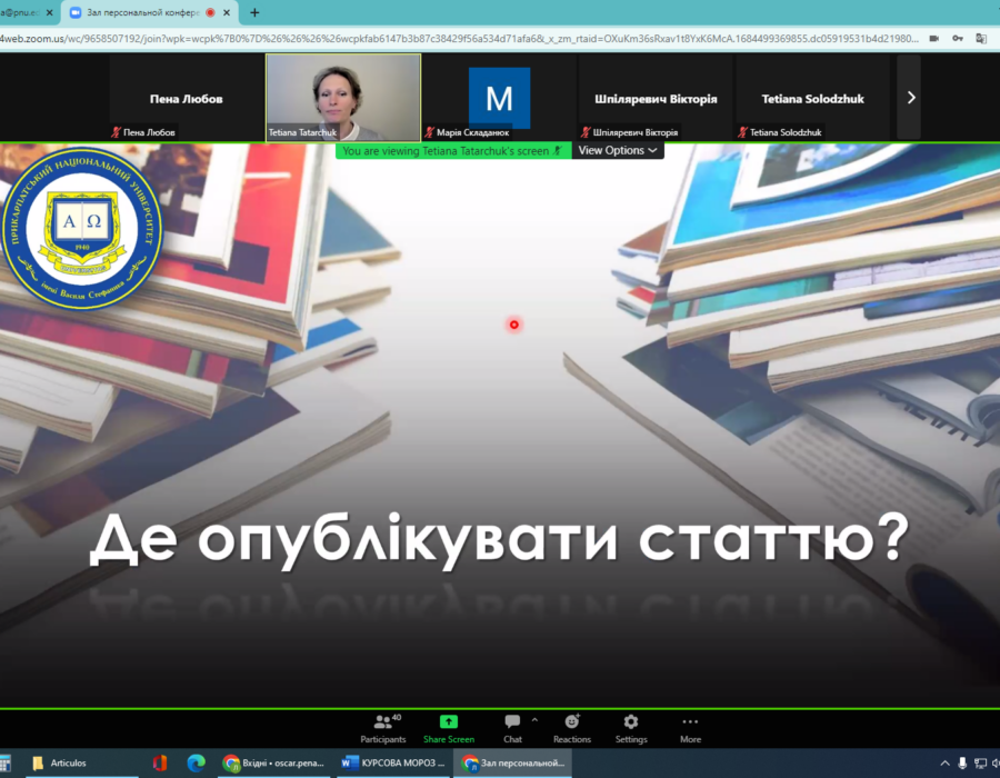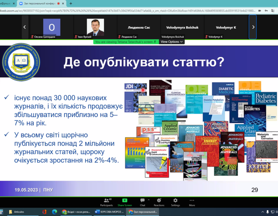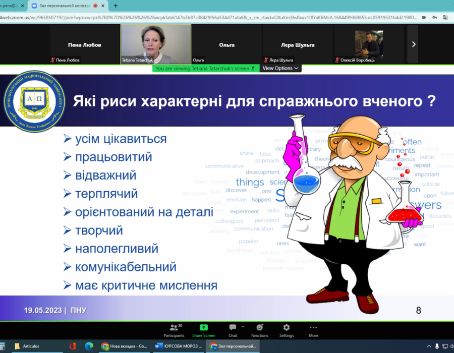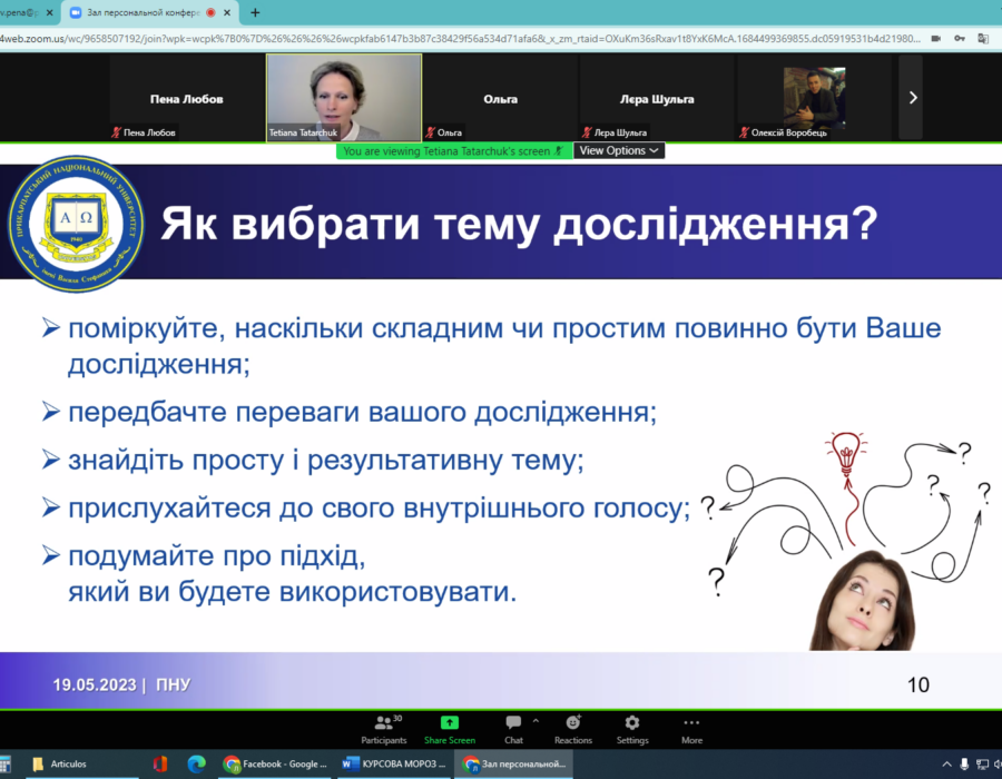 19 травня всі охочі мали змогу прослухати вебінар «Чи існує формула успіху в науці? Scopus і не тільки…», на якому було розглянуто різні аспекти успіху в науковій галузі: характерні риси справжнього науковця; вибір теми наукового дослідження; написання наукових статей; упорядкування літературних покликань; публікація статей; важливість командної роботи; міжнародна співпраця; CV – візитна картка науковця; написання наукових проєктів.