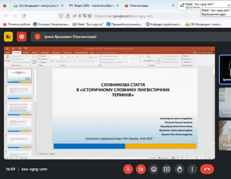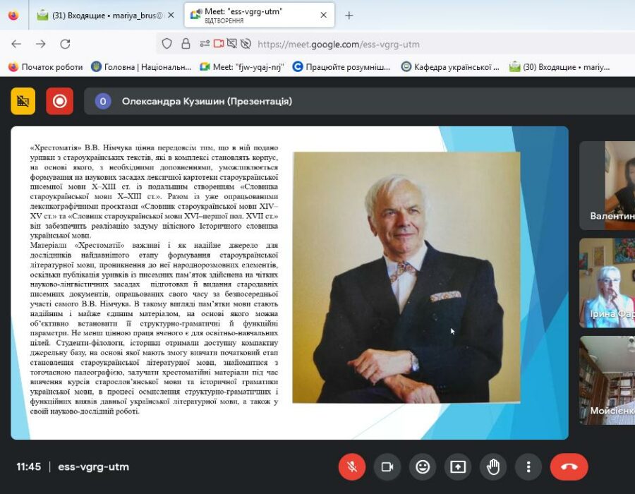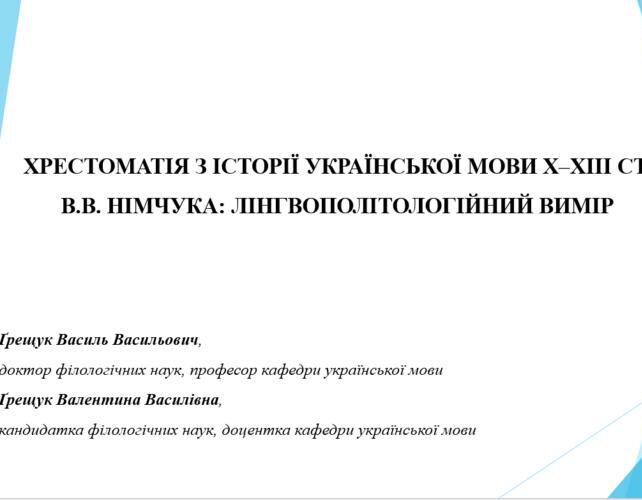 На першому пленарному засіданні 7 вересня 2023 року з вітальним словом до учасників конференції звернувся директор Інституту української мови НАН України, доктор філологічних наук, професор Павло Юхимович Гриценко і розпочав роботу конференції доповіддю «Українсько-південнослов’янські ізоглоси у висвітленні професора В.В. Німчука». Почесно, що на пленарному засіданні мали нагоду виголосити свою доповідь і вчені Прикарпатського національного університету імені Василя Стефаника професор Ґрещук Василь Васильович та доцентка Ґрещук Валентина Василівна «Хрестоматія з історії української мови Х–ХІІІ ст. В.В. Німчука: лінгвополітологійний вимір». Актуальні проблеми лінгвістики були заторкнуті у доповідях: «Поняття етнічної мови та етномовної свідомости у наукових працях професора В.В. Німчука» (Фаріон І.Д.), «Проблема мови церкви в науковому доробку професора В.В. Німчука» (Пуряєва Н.В.) та «Про словник говірки села Довге Закарпатської області» (Венжинович Н.Ф.).