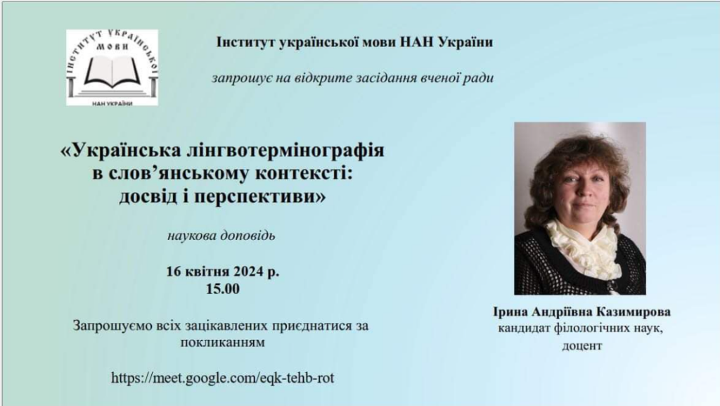 УЧАСТЬ В ОНЛАЙН-ПОДІЇ, ПРИСВЯЧЕНІЙ УКРАЇНСЬКІЙ ЛІНГВОТЕРМІНОГРАФІЇ