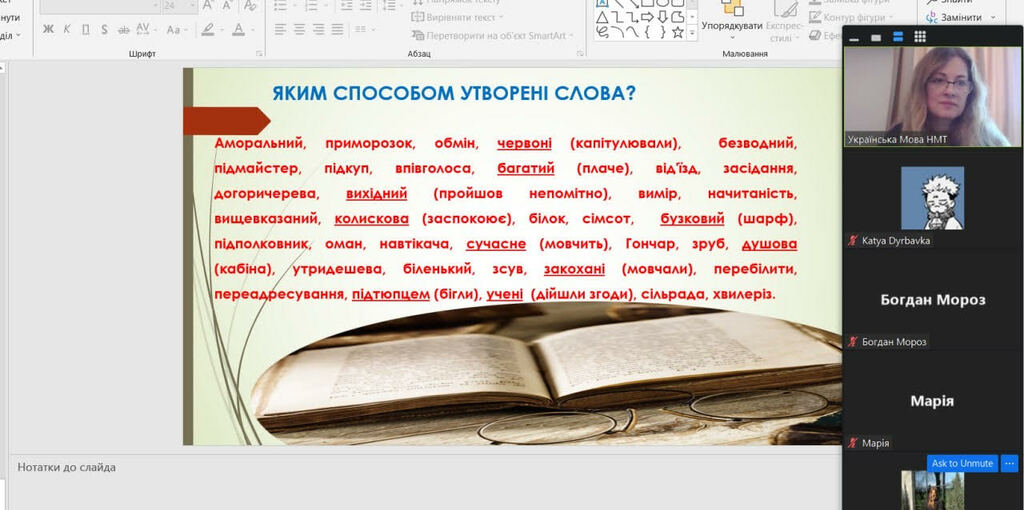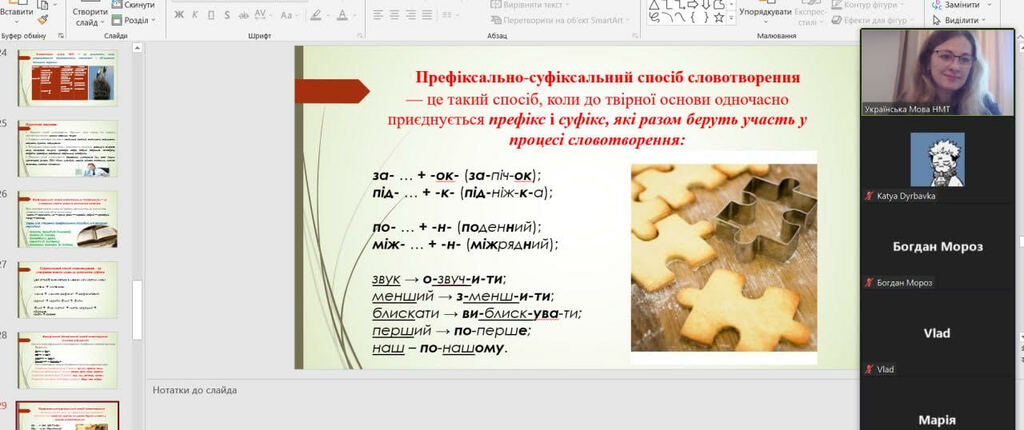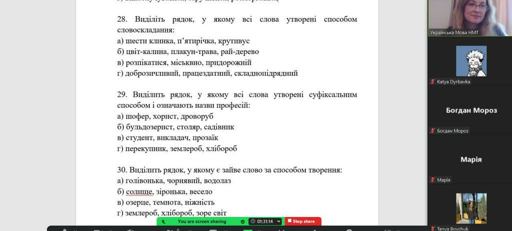 13 і 20 квітня 2024 року доцентка кафедри української мови Роксолана Стефурак провела заняття в рамках університетського проєкту “Готуємося до НМТ”, на яких випускники шкіл закріпили знання з теми “Будова слова. Словотвір” за допомогою виконання цікавих різнотипних завдань, тестів. Складними для абітурієнтів були вправи на визначення нульових морфем, проте з ними учасники проєкту успішно впоралися. Кафедра української мови сподівається, що й наступні заняття будуть корисними потенційним вступникам. Чекаємо Вас, майбутні студенти, у ПНУ!