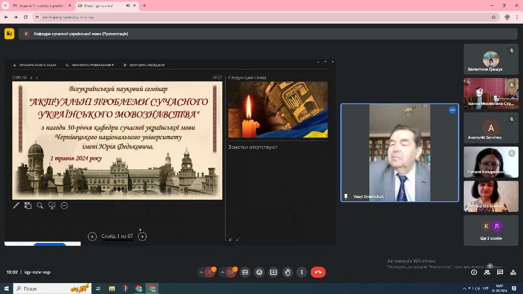 01. 05. 2024 відбувся семінар “Актуальні проблеми сучасного українського мовознавства” з нагоди 30-річчя кафедри сучасної української мови Чернівецького національного університету імені Юрія Федьковича. Із вітальним словом виступив доктор філологічних наук, професор кафедри української мови Прикарпатського національного університету імені Василя Стефаника Ґрещук Василь Васильович.