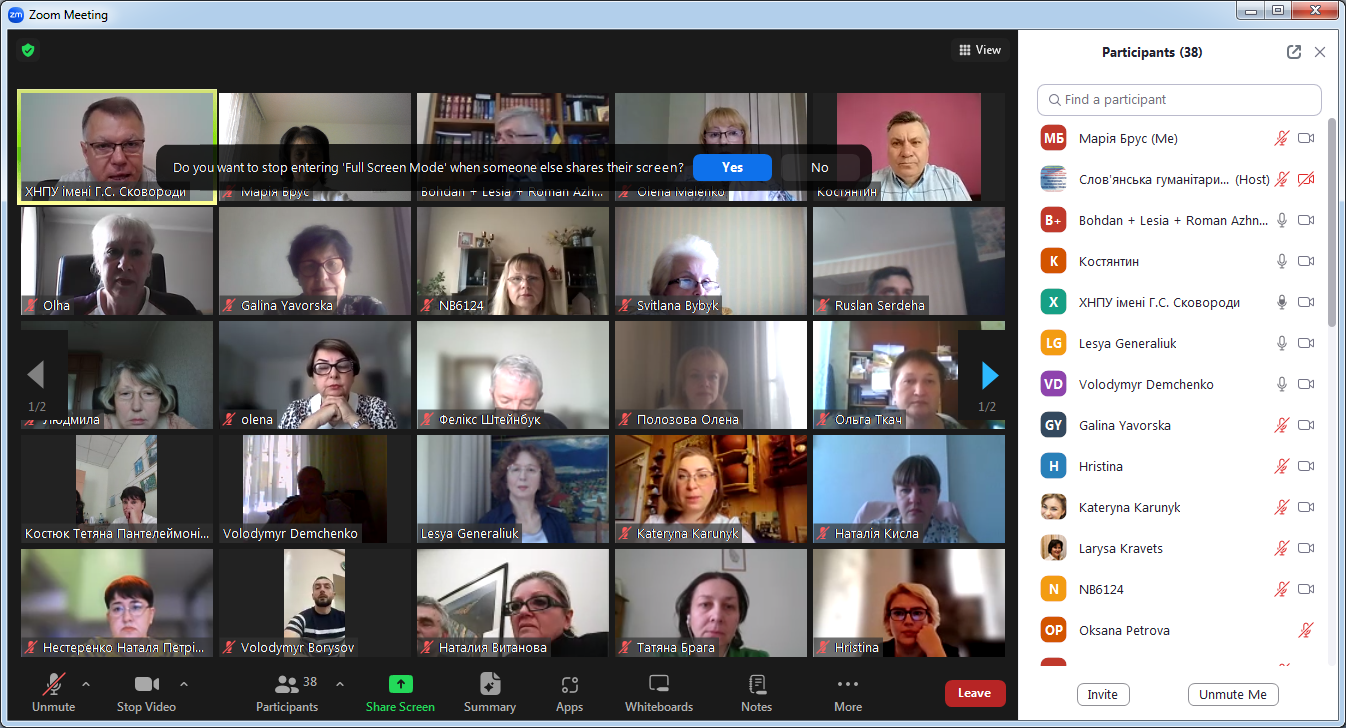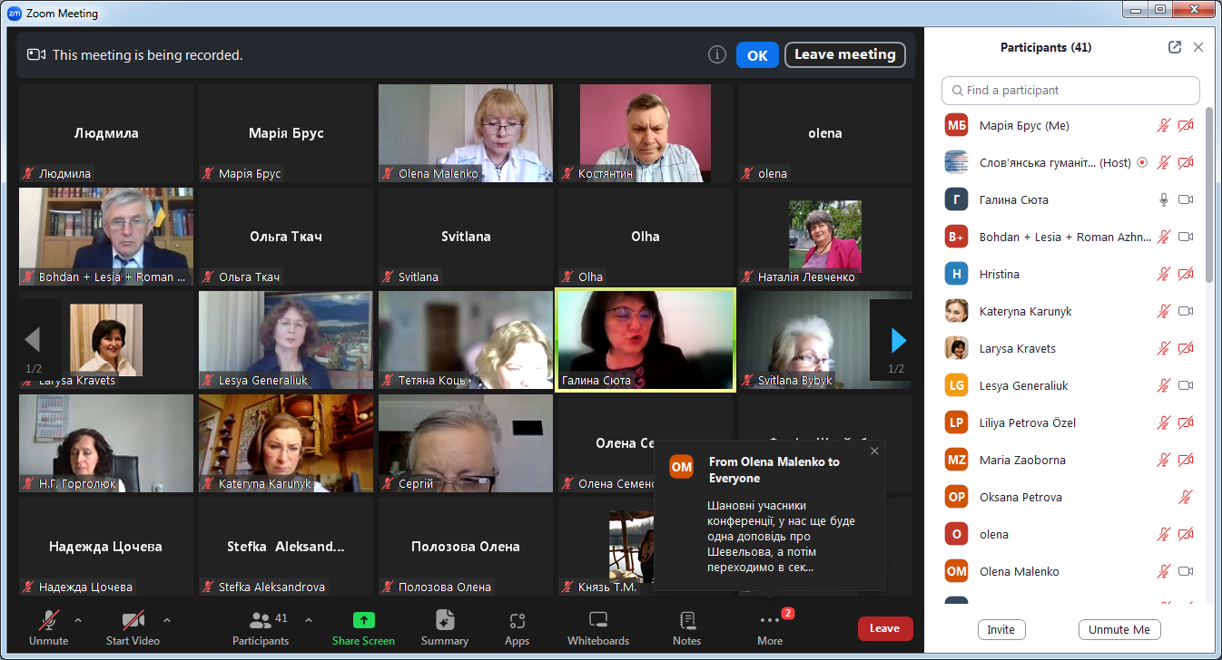 З урочистою промовою конференцію відкрив ректор Харківського національного педагогічного університету імені Г. С. Сковороди; доктор педагогічних наук, професор, член-кореспондент НАПН України Юрій Бойчук. Організаторкою і модераторкою зустрічі у форматі онлайн була завідувачка кафедри українознавства і лінгводидактики імені професора О. Г. Муромцевої Харківського національного педагогічного університету імені Г. С. Сковороди; докторка філологічних наук, професорка Олена Маленко.