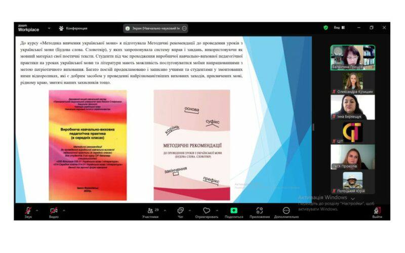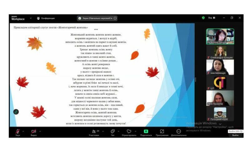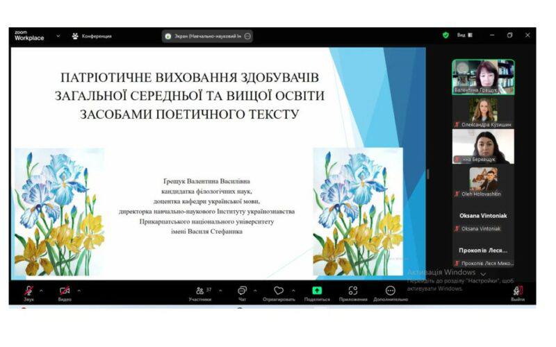 23 жовтня до Дня української писемності та мови відбулася гостьова онлайн-лекція «Патріотичне виховання здобувачів загальної середньої та вищої освіти засобами поетичного тексту» кандидатки філологічних наук, доцентки кафедри української мови, директорки навчально-наукового Інституту українознавства Прикарпатського національного університету імені Василя Стефаника Ґрещук Валентини Василівни. Зустріч була організована кафедрою української мови Кам’янець-Подільського національного університету імені Івана Огієнка. Модераторкою виступила Беркищук Інна Степанівна – кандидатка філологічних наук, доцентка, завідувачка кафедри української мови Кам’янець-Подільського національного університету імені Івана Огієнка. До лекції доєдналися не тільки студенти Кам’янець-Подільського національного університету імені Івана Огієнка, Прикарпатського національного університету імені Василя Стефаника, а й усі охочі.