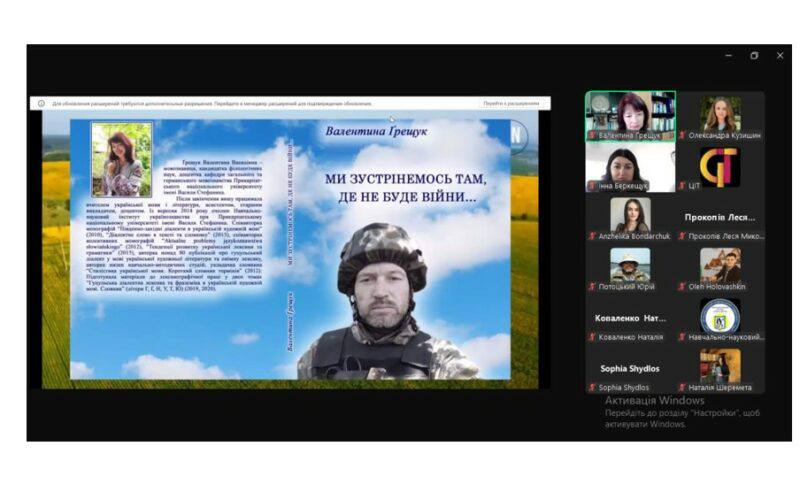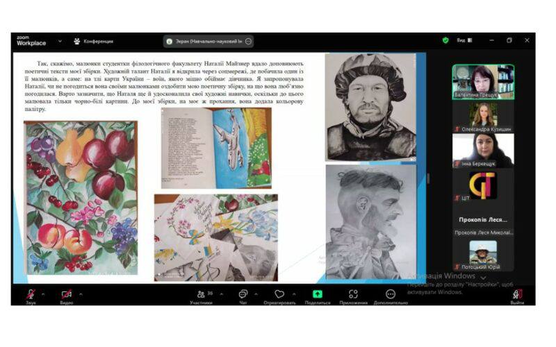 На початку гостьової лекції Валентина Василівна окреслила перед усіма присутніми поняття патріотизму, наголосила на тому, що в сьогоднішніх реаліях педагогам у навчальному процесі надто важливо акцентувати увагу на формуванні у здобувачів загальної середньої та вищої освіти почуття гордості за свою країну, поваги до воїна-захисника, любові до мови. Слухачі лекції мали можливість ознайомитися з поетичною збіркою Валентини Василівни “Ми зустрінемось там, де не буде війни…”, поринути у світ поезії, яку зачитувала сама авторка. Було акцентовано увагу на методичній цінності збірки, адже всі поетичні тексти студенти використовують на заняттях зі «Стилістики і культури української мови» та «Методики вивчення української мови» як ілюстративний матеріал.