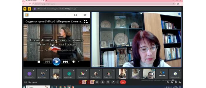 Присутні мали можливість подивитися один із відеороликів, змонтований студентками Факультету філології (вірш «Пишаюся тобою, моя мово» декламує Петришин Уляна). Окрім того, слухачі насолодилися поезіями з уст самої авторки.