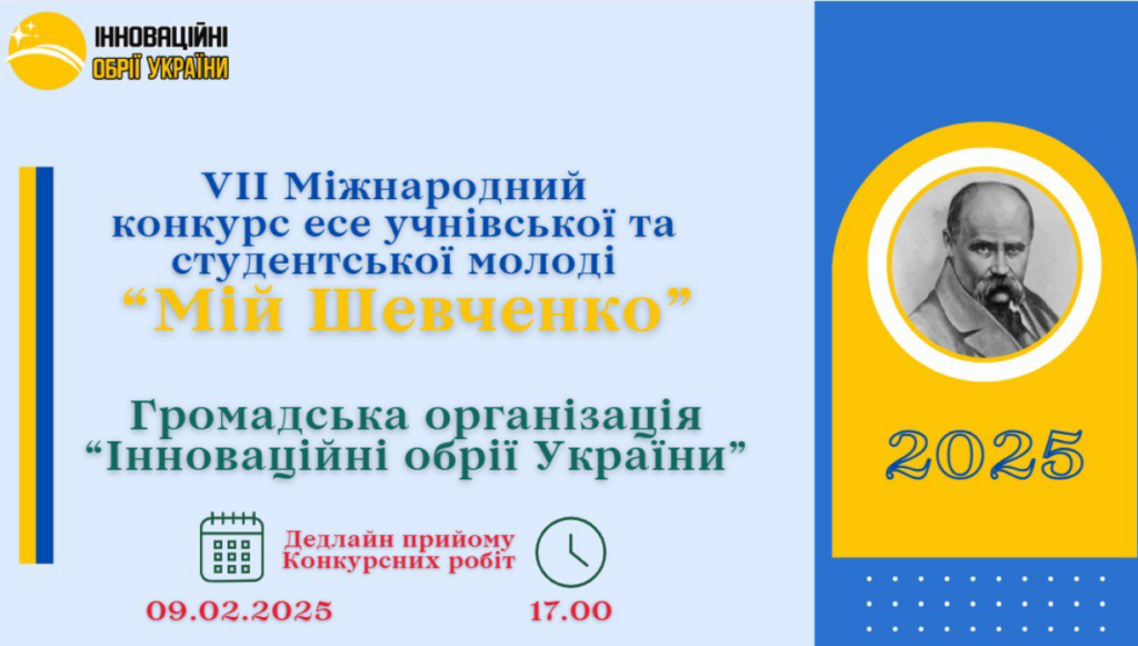Відбувся VII Міжнародний конкурс есеїв учнівської та студентської молоді «Мій Шевченко», який традиційно організовує громадська організація «Інноваційні обрії України» спільно з різними закладами освіти. Метою конкурсу є популяризація творчої спадщини Тараса Шевченка, актуалізація пам’яті про Кобзаря та його ролі в закладанні духовних основ Читати далі