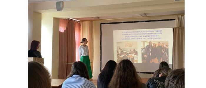 Із вітальним словом до студентів-практикантів звернулася заступниця декана Факультету філології Ольга Лазарович. Вона наголосила на важливості такого етапу проходження виробничої навчально-виховної педагогічної практики у навчальному процесі.  Педагогічна практика тривала 6 тижнів і включала в себе як проведення уроків української мови та літератури, так і участь у виховній, методичній і позакласній роботі закладів загальної середньої освіти. Студенти активно застосовували сучасні методи навчання, створювали інтерактивні матеріали, формували в учнів ключові компетентності та сприяли розвитку зацікавлення до предмета. На підсумковій зустрічі Валентина Василівна Ґрещук, яка висловила вдячність студентам  за сумлінну роботу, творчий підхід і гідне представлення факультету філології на шкільній ниві. Вона наголосила, що цей етап професійного становлення — особливо важливий, адже саме в школі майбутні педагоги стикаються з реаліями освітнього процесу, вчаться адаптовувати теоретичні знання до потреб учнів, долати виклики та знаходити ефективні педагогічні рішення. Студенти, продемонстрували ґрунтовні звіти про виконану роботу, доповнивши їх презентаціями, світлинами, прикладами розроблених матеріалів та емоційними розповідями про проведені уроки з української мови та літератури. У виступах звучали і нотки гордості, і щире натхнення — адже практика дозволила кожному відчути себе справжнім учителем.