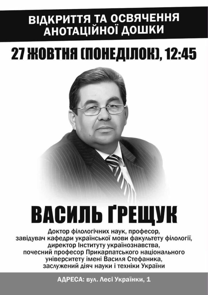 27 жовтня о 10:30 у 23 аудиторії Карпатського національного університету імені Василя Стефаника відбудеться Всеукраїнський диктант єдності – масштабна подія, що об’єднає студентів, викладачів, науковців, військових та відомих людей Прикарпаття навколо любові до рідного слова. Цьогоріч авторкою тексту диктанту стане Читати далі