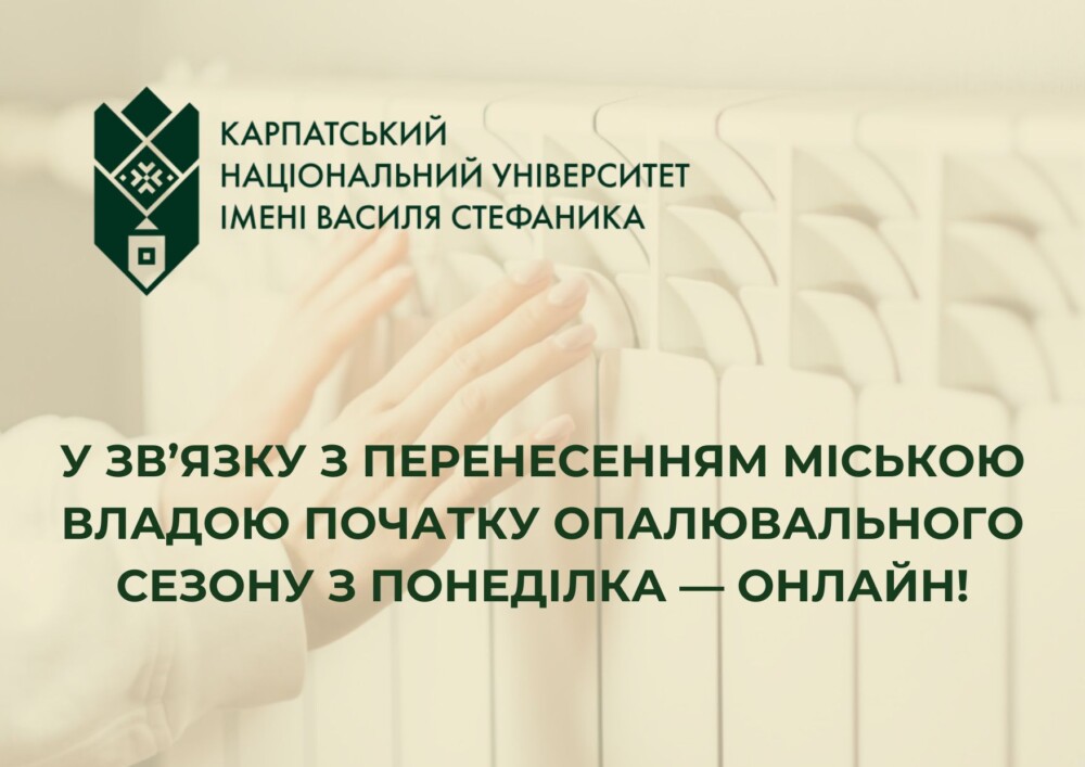 Щоб студенти та викладачі не мерзли в холодних аудиторіях і не хворіли, у Карпатському національному університеті імені Василя Стефаника тимчасово переходять на дистанційне навчання. З 27 по 31 жовтня 2025 року заняття у всіх факультетах, інститутах і коледжах університету проходитимуть Читати далі