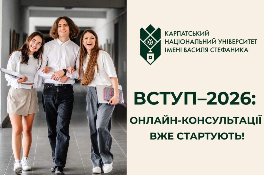 Карпатський національний університет імені Василя Стефаника розпочинає онлайн-консультації для вступників 2026 року. З 1 березня! Щопʼятниці | 15:00–16:00! Під час зустрічей ви зможете дізнатися: – про умови вступу – спеціальності та освітні програми – подання документів – особливості вступної кампанії–2026. Читати далі