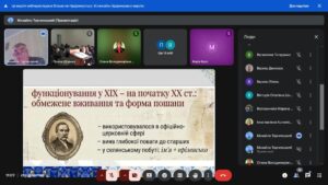 На секційному засіданні «Мова в діахронному розвитку» виступила завідувачка кафедри української мови Марія Петрівна Брус із доповіддю «Розвиток української літературної мови в Галичині наприкінці ХVIIІ ст.». Вона висловила вдячність організаторам за проведення цієї всеукраїнської конференції і за можливість взяти участі в ній.