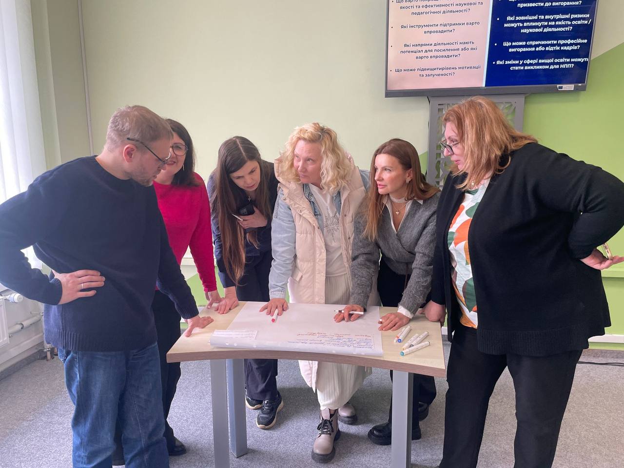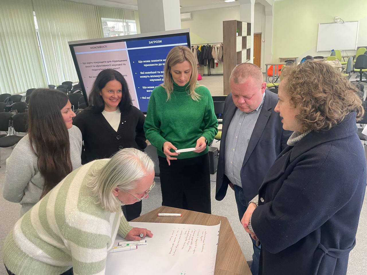 Наступним етапом став SWOT-аналіз, під час якої науково-педагогічні працівники проаналізували сильні та слабкі сторони університетського середовища, а також визначили зовнішні можливості й виклики, що впливатимуть на розвиток освіти, науки, міжнародної діяльності та партнерств.