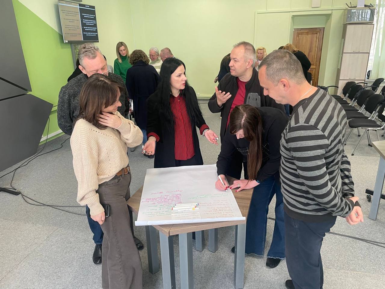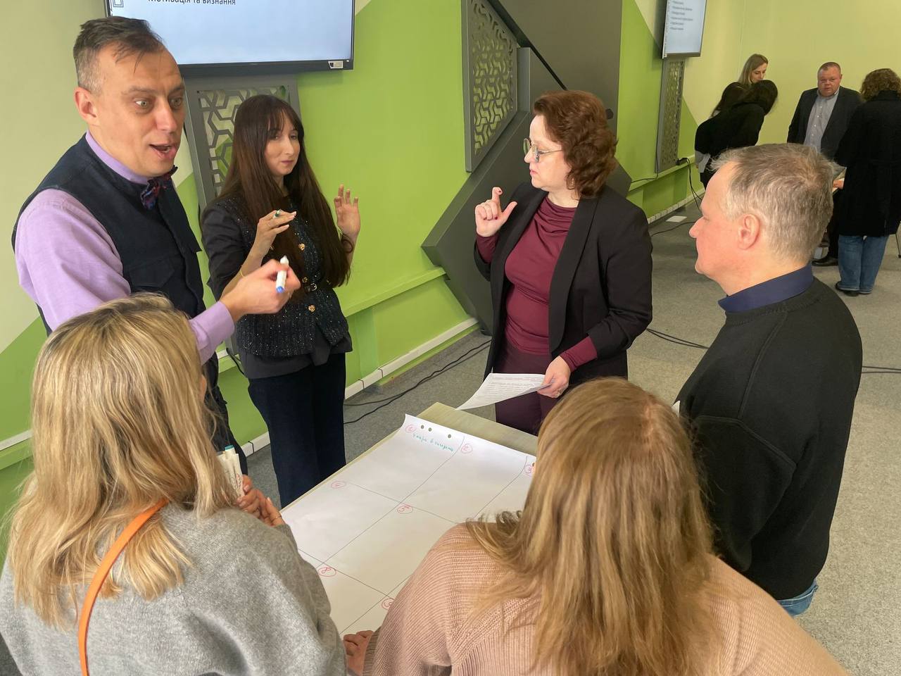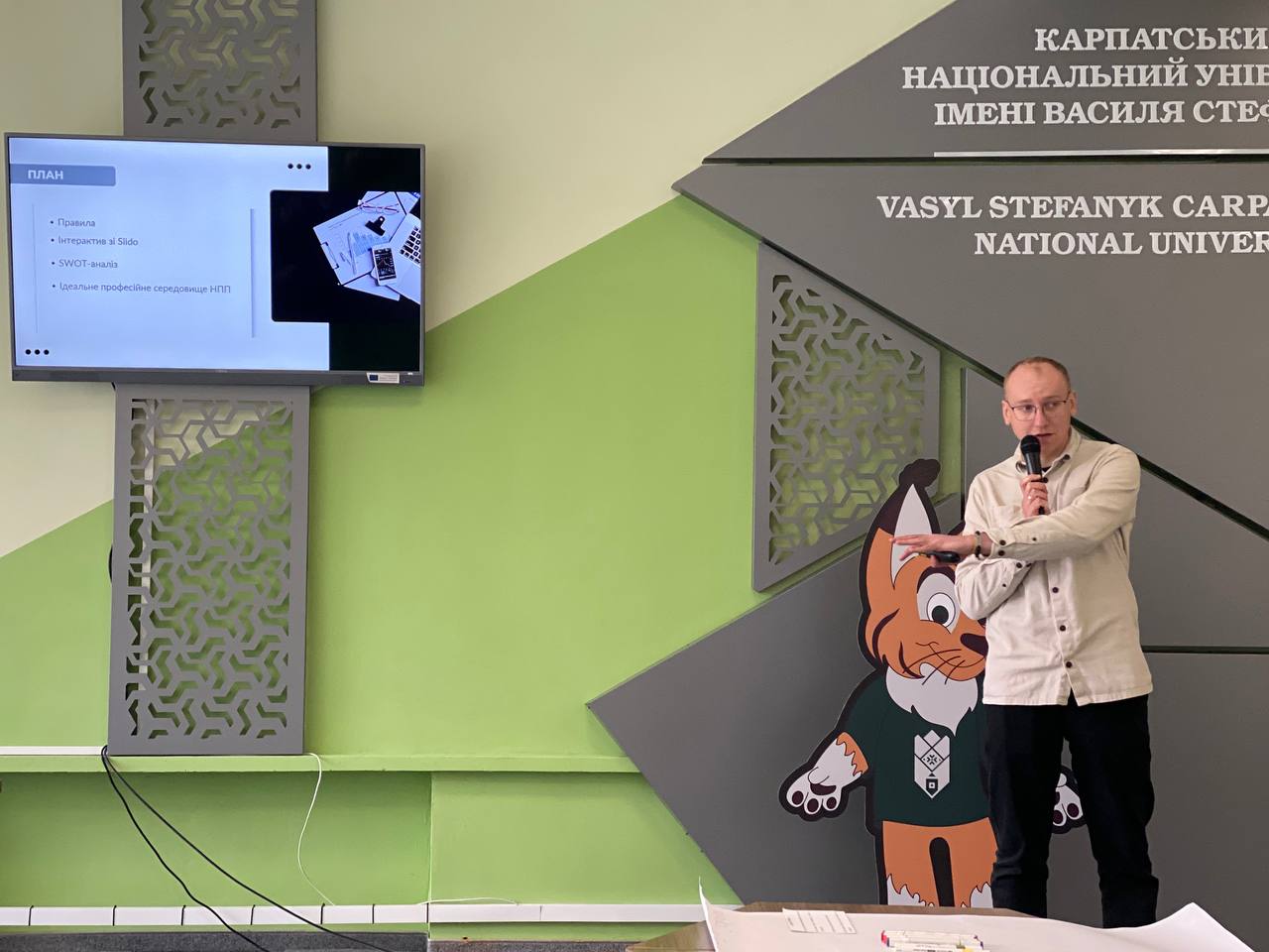 Модератором заходу виступив Тарас Малишівський – викладач кафедри менеджменту та бізнес-адміністрування, який координував роботу груп та допомагав структурувати напрацьовані ідеї, забезпечуючи продуктивний діалог між учасниками сесії.