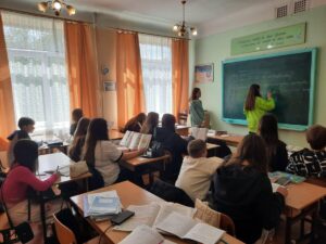 ВІРСТЮК Віта: «Перший урок став для мене справжнім виходом із зони комфорту, який несподівано приніс позитивні враження. Спочатку я хвилювалась, що дітям буде нецікаво, і вони просто не слухатимуть; потім побачила допитливість у їхніх очах, проте до кінця уроку залишався мандраж. Зацікавити сучасне покоління насправді виявилося легше, ніж я очікувала. Було надзвичайно цікаво нарешті побачити все зі сторони вчителя, адже цей досвід кардинально відрізняється від звичного перебування за партою. Стоячи перед класом, я відчула відповідальність за кожен момент уроку. Ця зміна ракурсу дала мені змогу по-новому відкрити для себе поведінку учнів та їхні щирі реакції. Навіть попри внутрішнє хвилювання, я отримала  неймовірний приплив енергії від взаємодії з учнями. Після заняття я відчула полегшення та приємне усвідомлення того, що мені вдалося знайти спільну мову з класом».